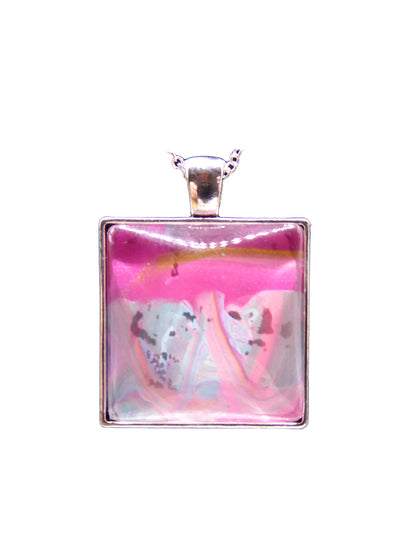Discover a sense of calm and elegance with this square pendant necklace “Deep Bright Relaxation”, featuring a stunning paint-pour design in relaxing shades of deep pink. Flowing stripes of pink create a soothing, layered effect, highlighted with subtle accents of gold and hints of blue, lending the piece a warm and refined look. This is a one-of-a-kind pendant, ensuring a truly unique pattern that brings the charm of abstract art into wearable form.